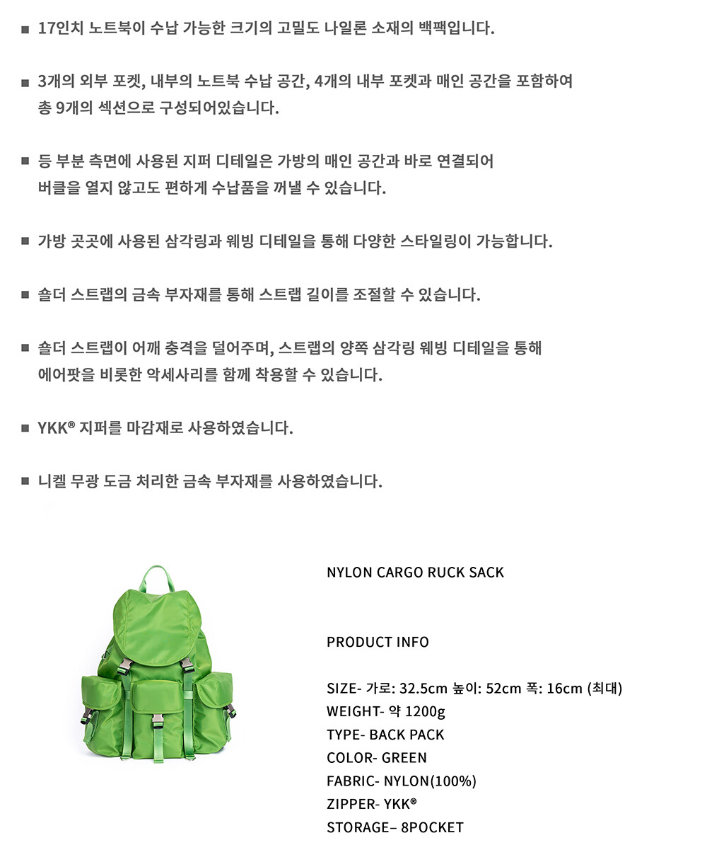 [After Pray Edition] Nylon Cargo Rucksack (Green)
