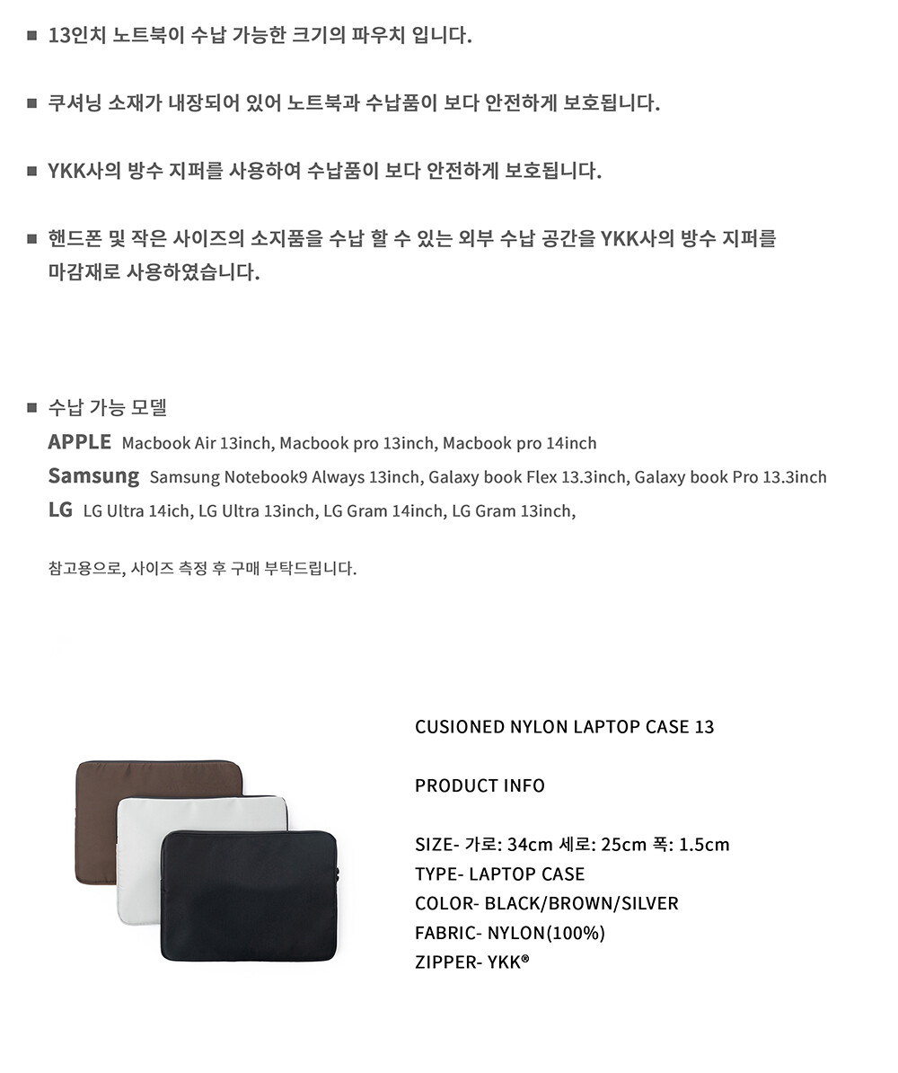 Cushioned Nylon Laptop Case 13-Inch (Black/Brown/Silver)
