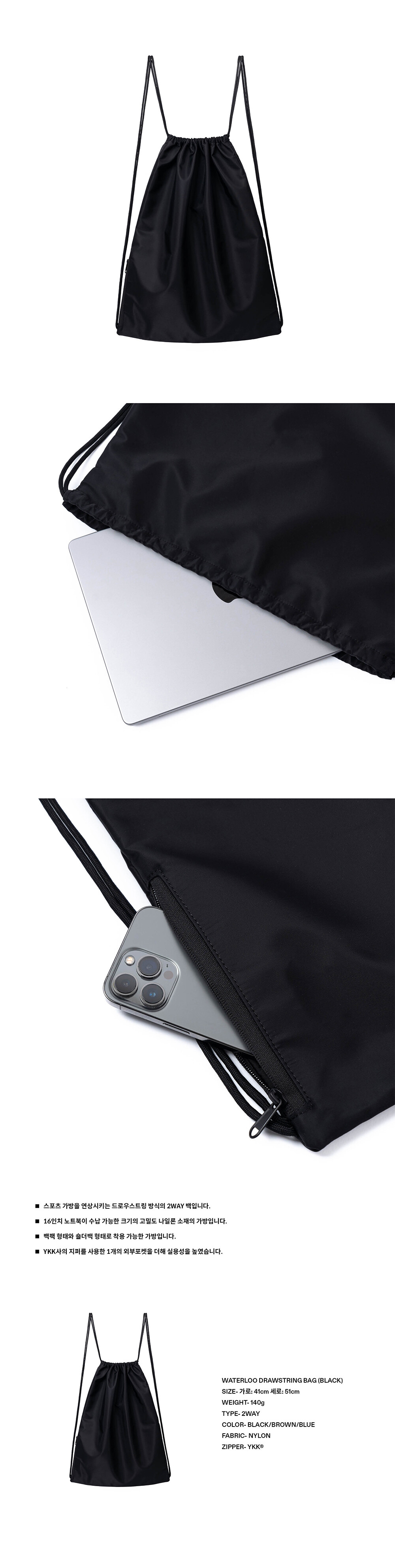 Waterloo Drawstring Bag (Black)
