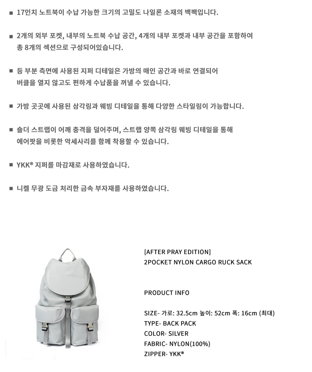 [After Pray Edition] 2-Pocket Nylon Cargo Rucksack (Silver)