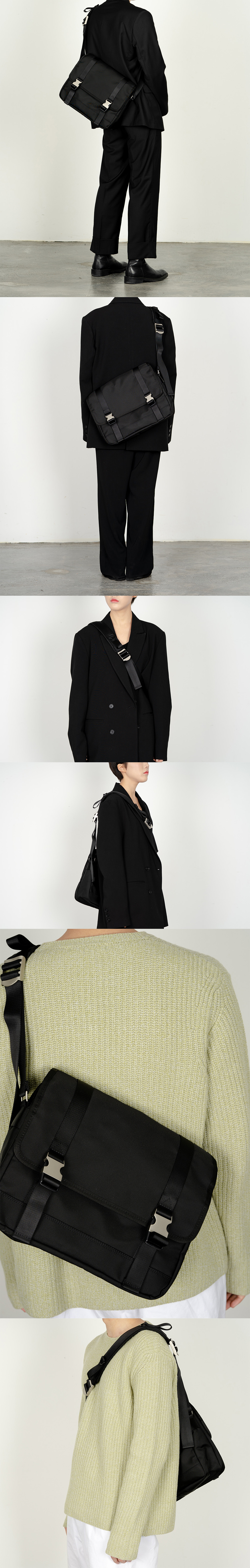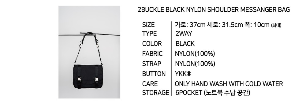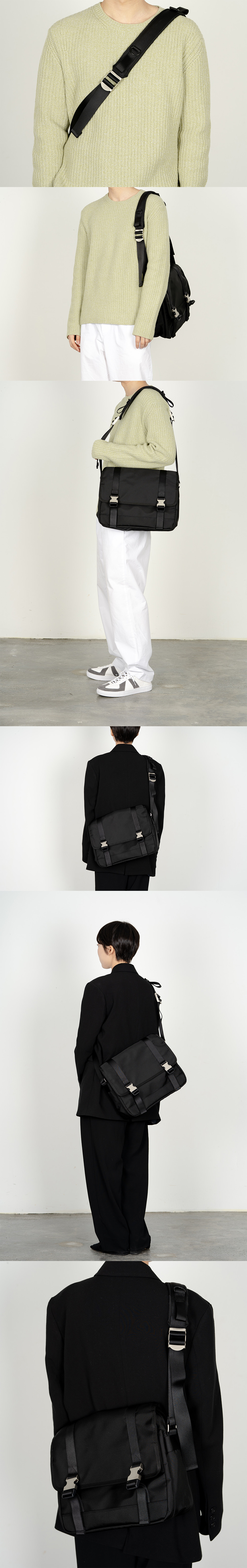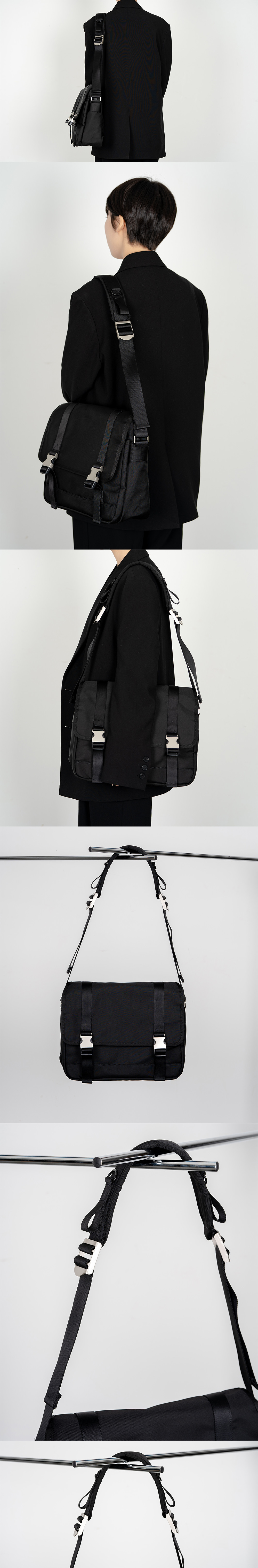 2-Buckle Shoulder Messenger Bag (Black)
