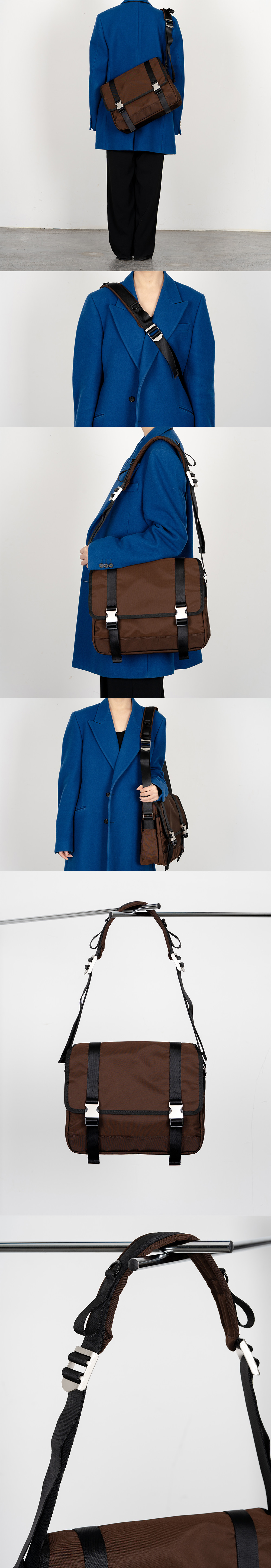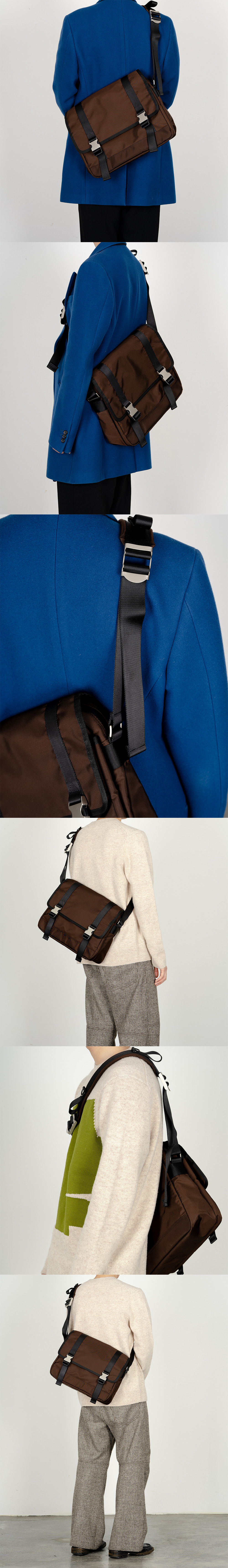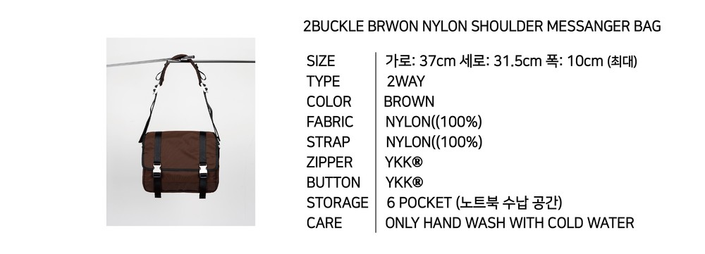 2BUCKLE BROWN NYLON SHOULDER MESSENGER BAG