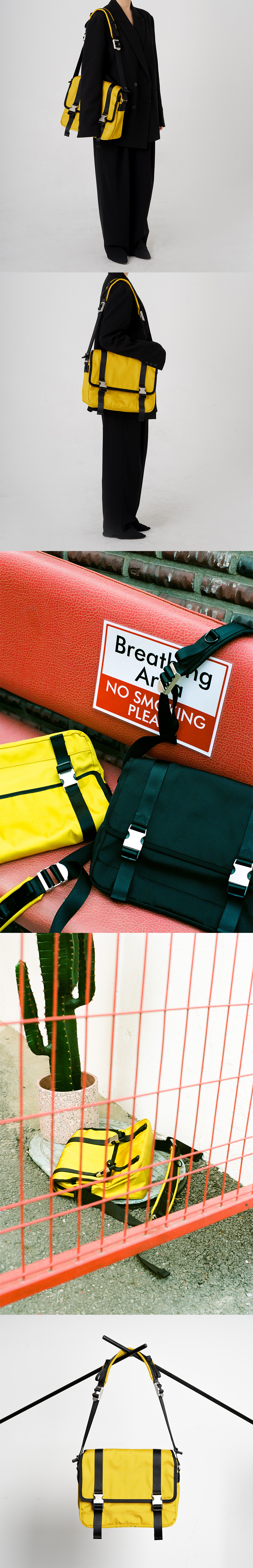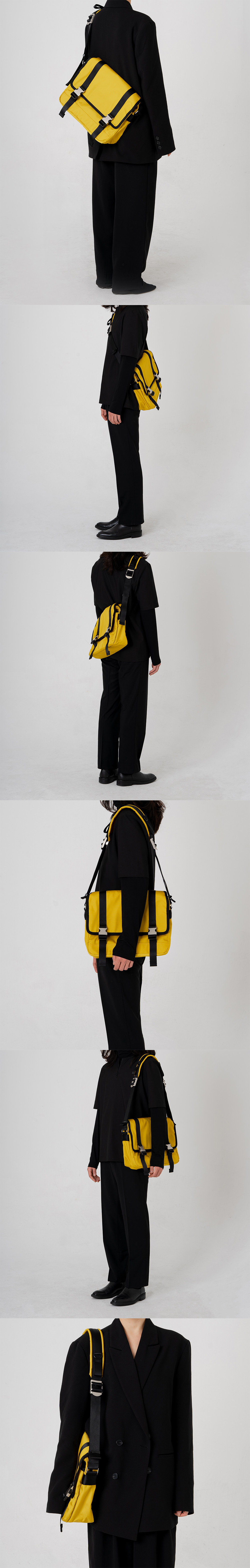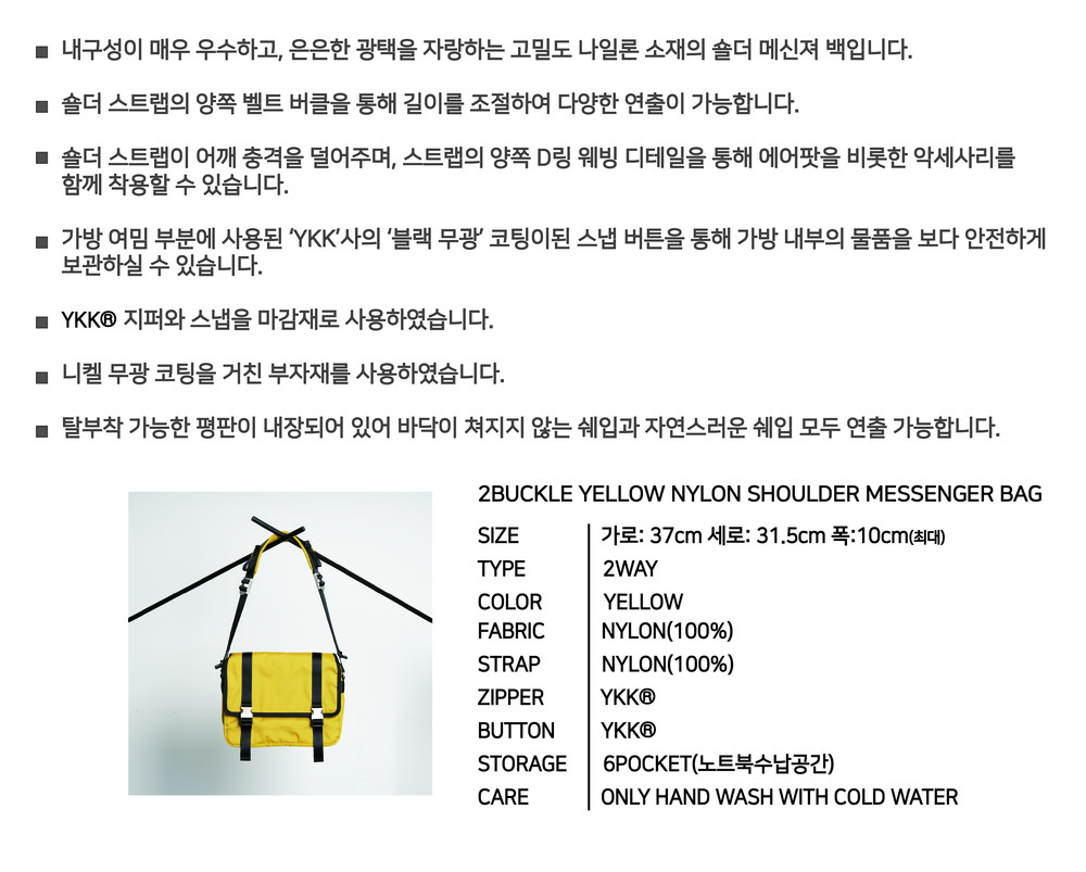 2BUCKLE YELLOW NYLON SHOULDER MESSENGER BAG