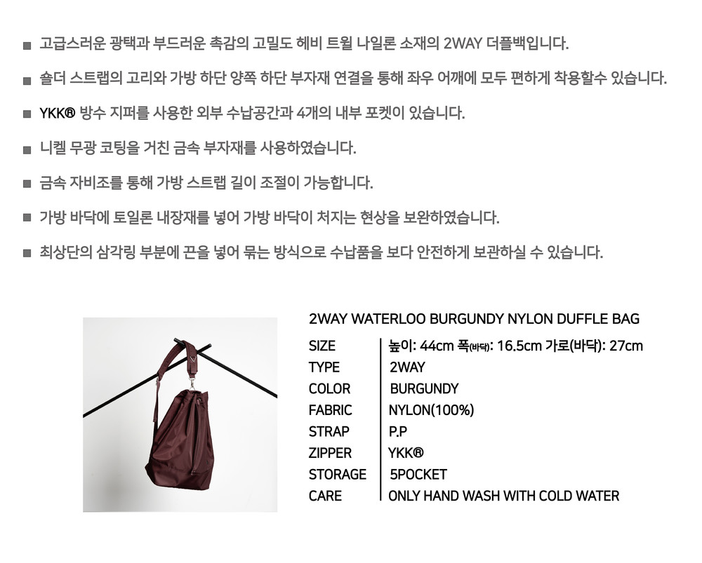 2WAY WATERLOO BURGUNDY NYLON DUFFLE BAG